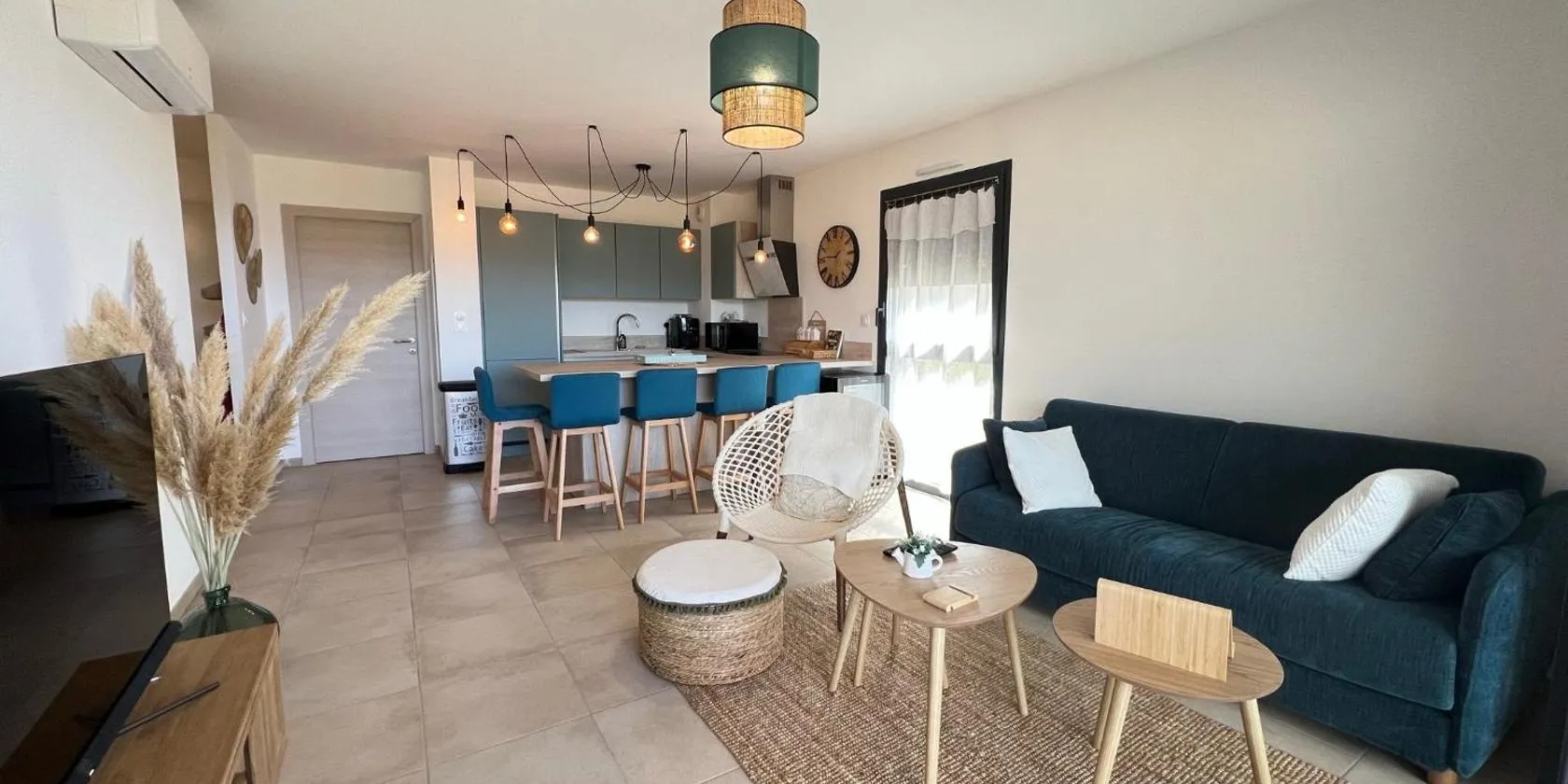 Boasting garden views, T3 Propriano vue mer, neuf, climatisé et classé 4 étoiles features accommodation with a garden and a patio, around 2.7 km from Propriano Port.