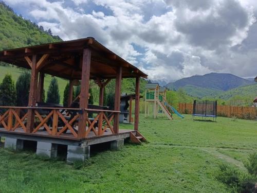 Comfortable Accommodation: Căsuța din Rusca in Sebeşu de Jos offers a holiday home with two bedrooms and two bathrooms. The living room features a sofa bed and a dining area with a table. Outdoor Spaces: Guests can relax on the sun terrace or in the garden, enjoying mountain views. The property includes an outdoor play area and a picnic area. Modern Amenities: The holiday home provides free WiFi, a fully equipped kitchen with a coffee machine, and a fireplace. Additional amenities include a barbecue and free toiletries. Convenient Location: Situated 35 km from Sibiu International Airport, the property is close to attractions such as Union Square (31 km) and The Stairs Passage (32 km). Free on-site private parking is available. Highly rated by guests.